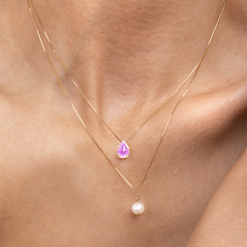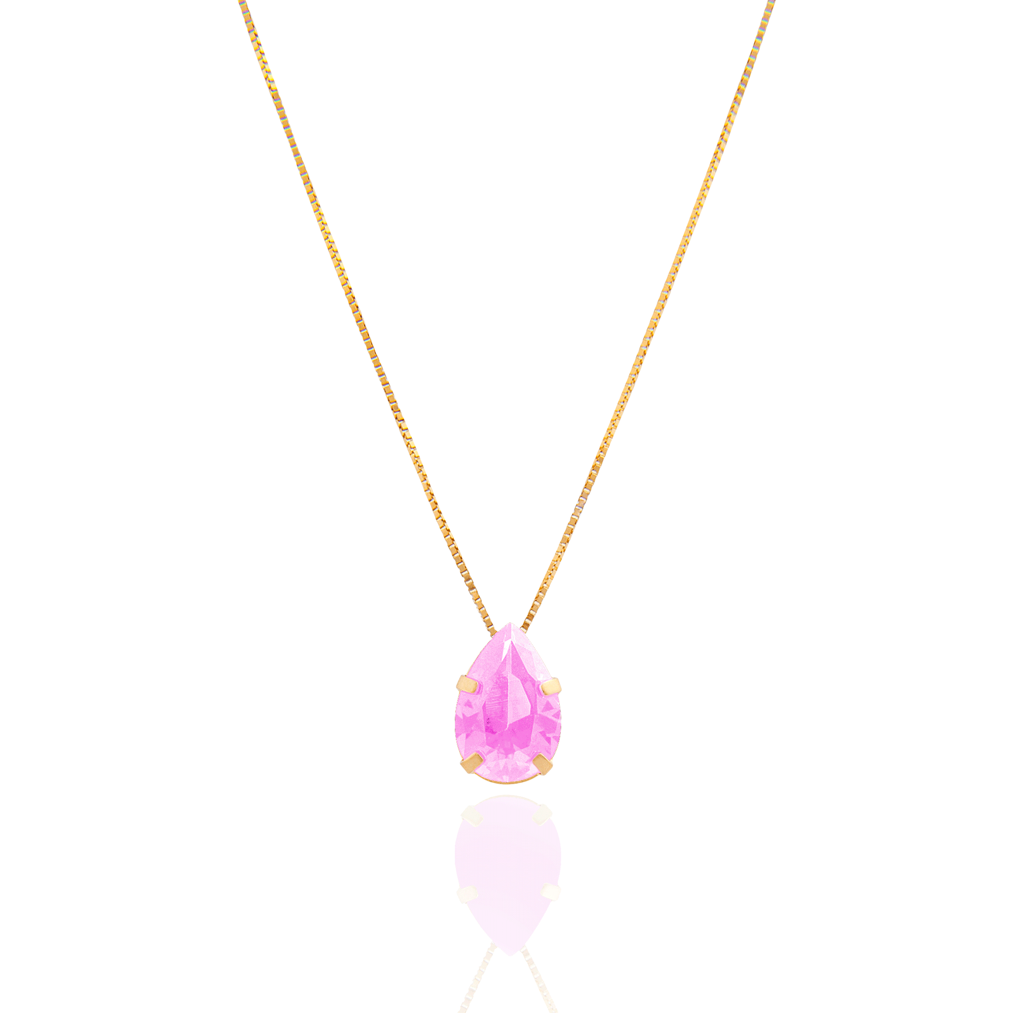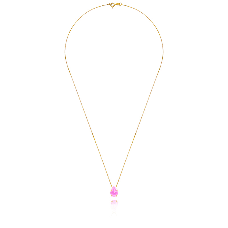 Corrente em ouro amarelo 18k com acabamento todo feito à mão. Uma peça romântica e super feminina, sendo uma ótima opção para o dia a dia. Combina com brincos de cor rosa e branco.