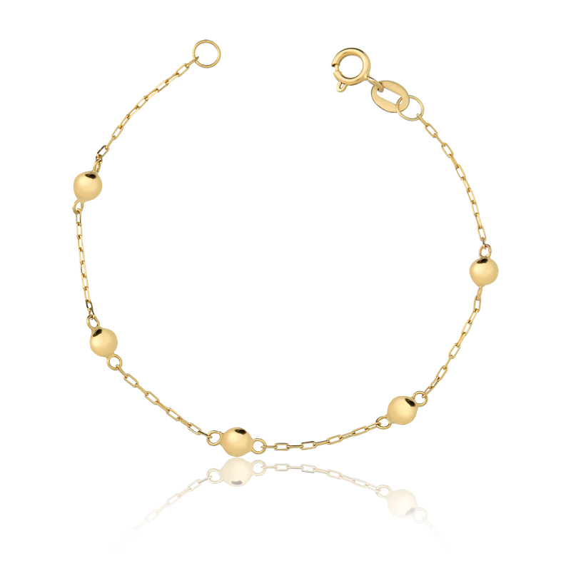Pulseira em ouro amarelo 18k 750 com bolinhas e acabamento todo feito à mão. As joias S. Stein Baby são certificadas com o Selo Nacional Amagold e possuem Garantia Permanente S. Stein.